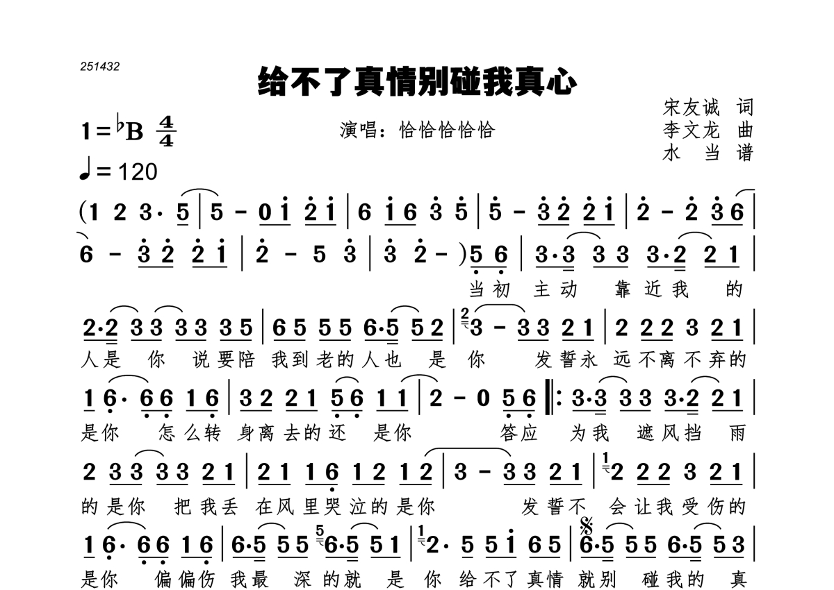 给不了真情别碰我真心简谱 - 恰恰恰恰恰演唱