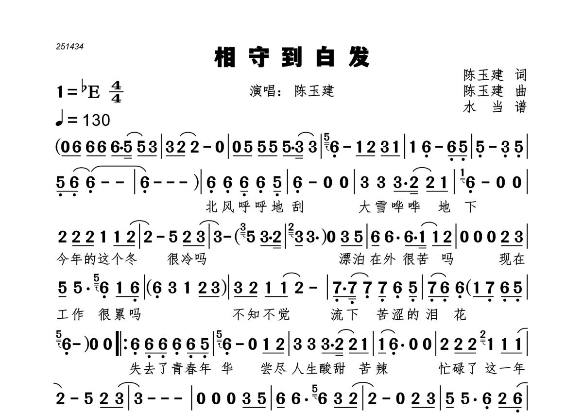 相守到白发简谱 - 陈玉建演唱