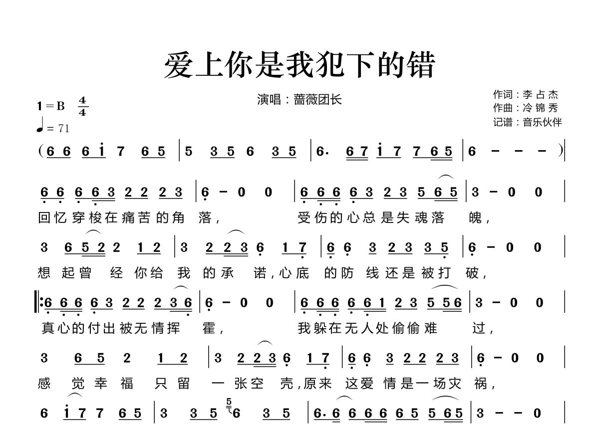 爱上你是我犯下的错简谱 - 蔷薇团长演唱