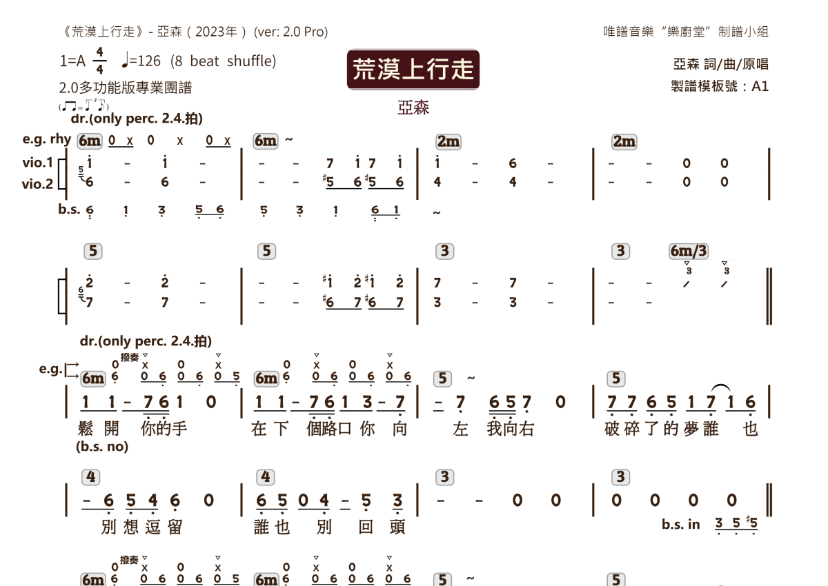 亚森《荒漠上行走》乐队总谱 - 2.0版多功能团谱