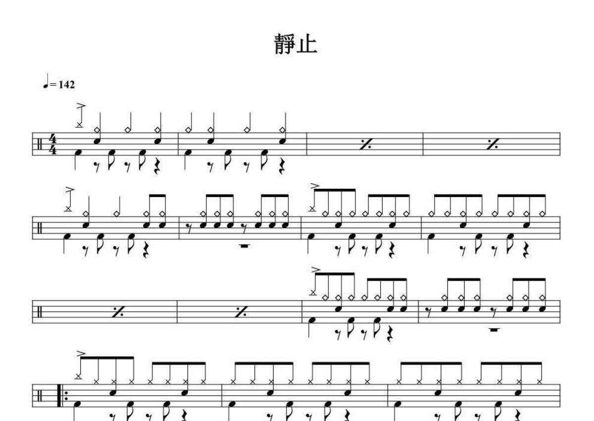 《静止》是杨乃文演唱的一首歌曲,拍号为4/4拍,歌曲速度为每分钟142拍,这份架子鼓谱共有四张高清图谱,图谱由 @音符喷血者 编配上传,图谱使用五线谱编配,使用这份静止架子鼓谱,你将能够轻松地敲打出这首杨乃文的静止,快来尝试吧。