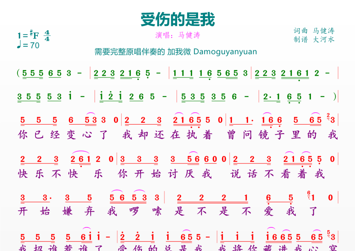 《受伤的是我》简谱 - 马健涛