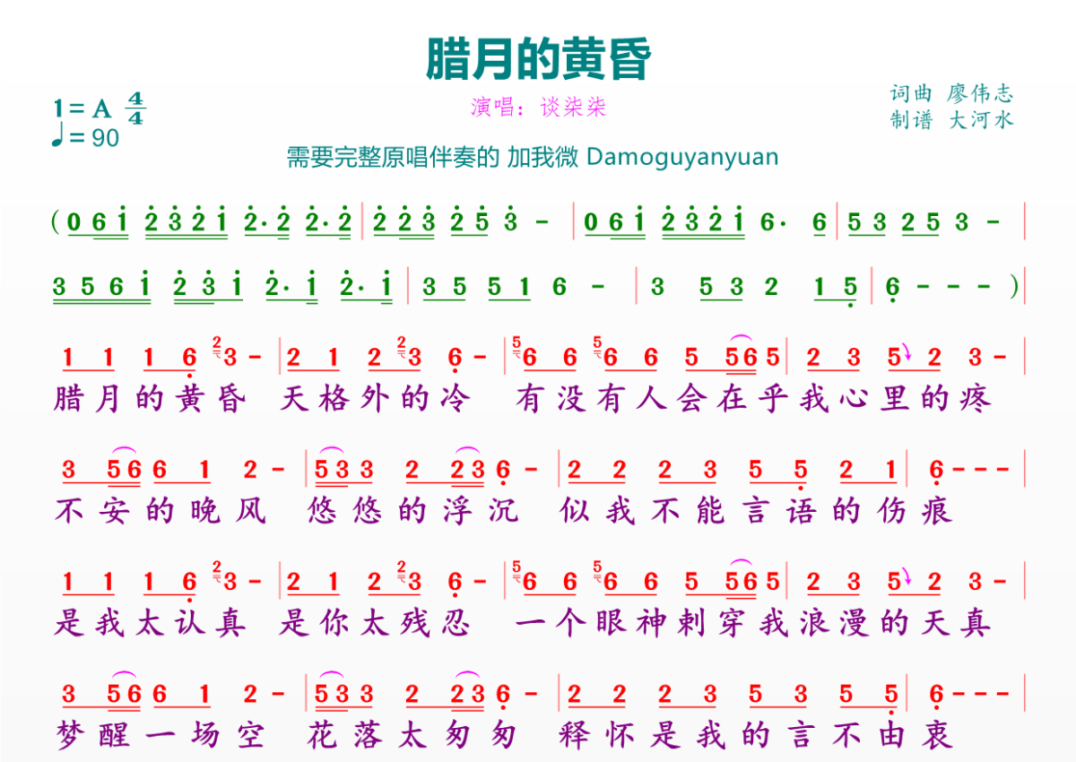 腊月的黄昏简谱 - 谈柒柒演唱