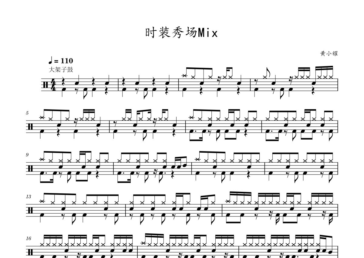 黄小耀《时装秀场Mix》架子鼓谱 - 大架子鼓版