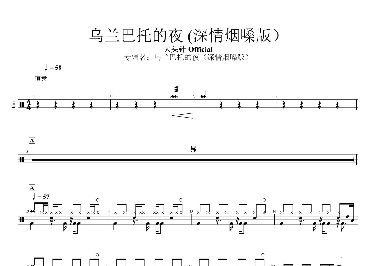 大头针 Official《乌兰巴托的夜(深情烟嗓版)》架子鼓谱
