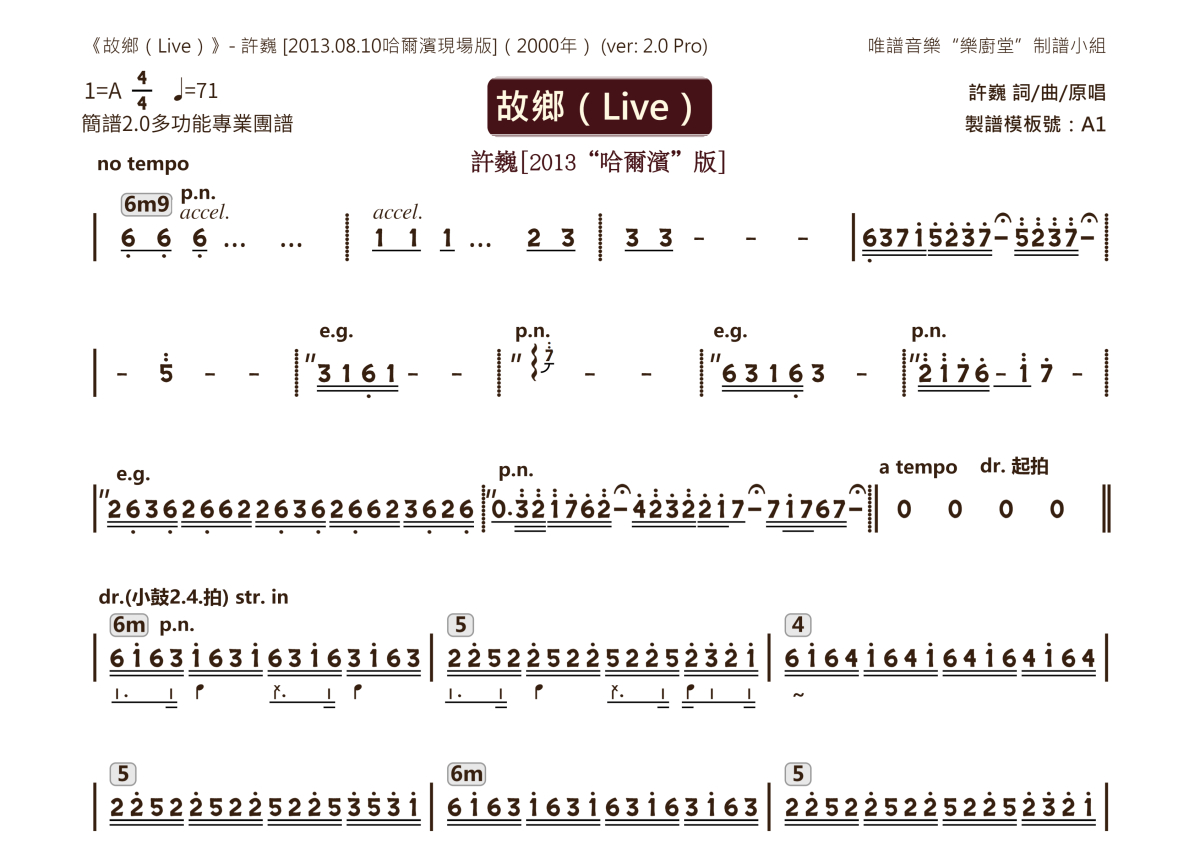 许巍《故乡(Live)》乐队总谱 - 2.0版多功能团谱