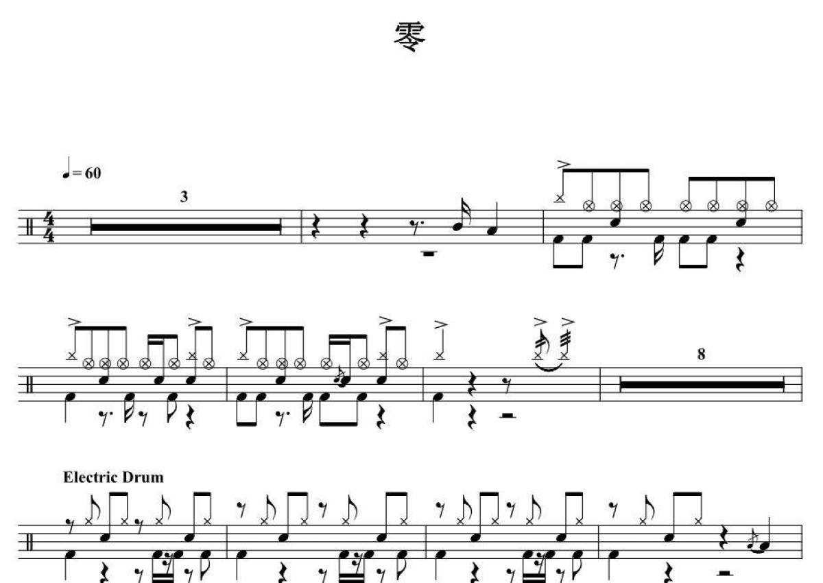 《零》是柯有伦演唱的一首歌曲,拍号为4/4拍,歌曲速度为每分钟60拍,这份架子鼓谱共有三张高清图谱,图谱由 @音符喷血者 编配上传,图谱使用五线谱编配,使用这份零架子鼓谱,你将能够轻松地敲打出这首柯有伦的零,快来尝试吧。