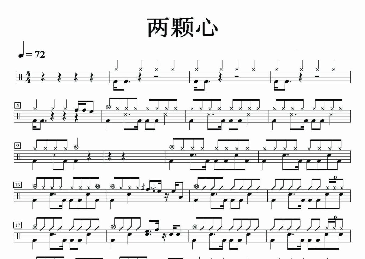 《两颗心》是Beyond演唱的一首歌曲,拍号为4/4拍,歌曲速度为每分钟72拍,这份架子鼓谱共有两张高清图谱,图谱由 @音符喷血者 编配上传,图谱使用五线谱编配,使用这份两颗心架子鼓谱,你将能够轻松地敲打出这首Beyond的两颗心,快来尝试吧。