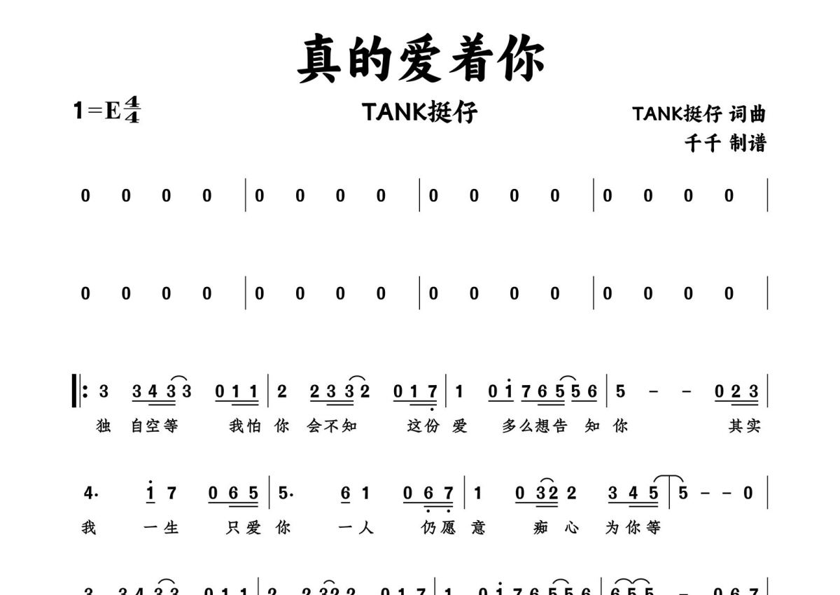 真的爱着你简谱 - TANK挺仔演唱