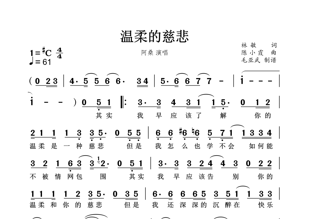 温柔的慈悲简谱 - 阿桑演唱