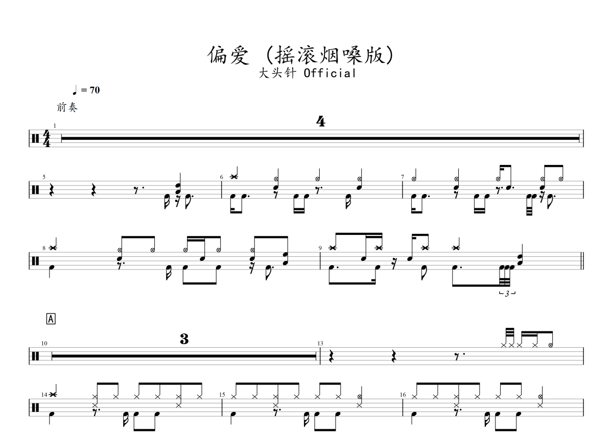 偏爱 (摇滚烟嗓版)架子鼓谱 - 大头针演唱