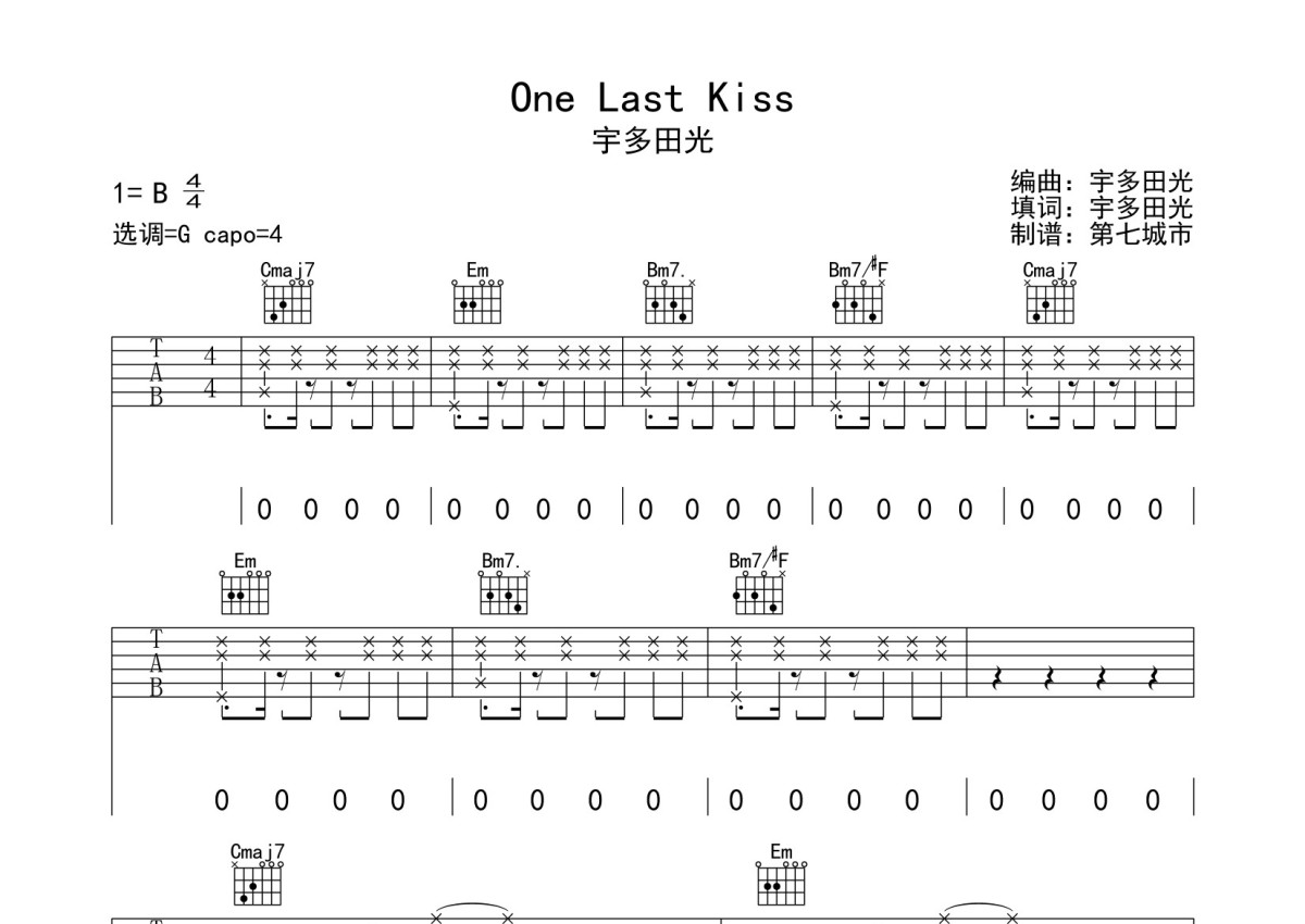 宇多田光《One last kiss》吉他谱 - G调弹唱六线谱
