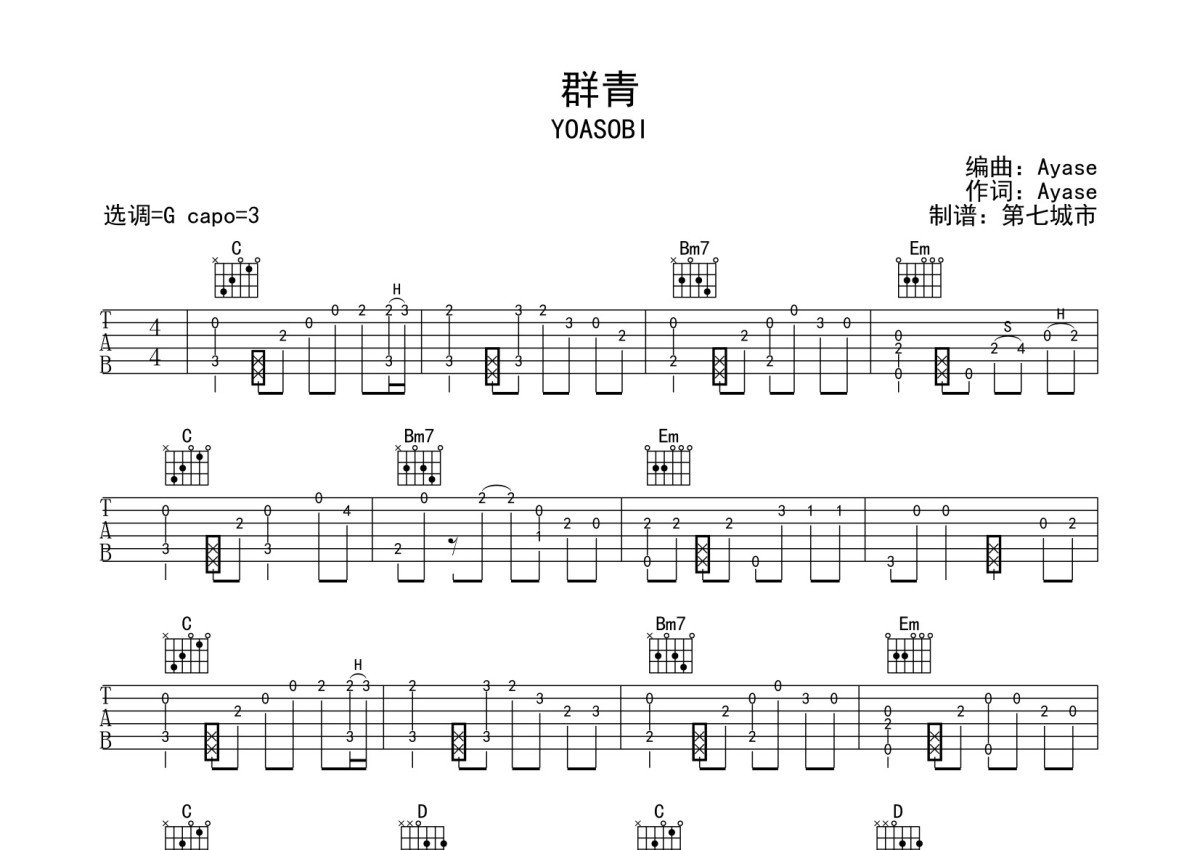 YOASOBI《群青》吉他谱 - G调独奏六线谱