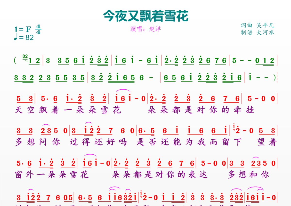 今夜又飘着雪花简谱 - 赵洋演唱