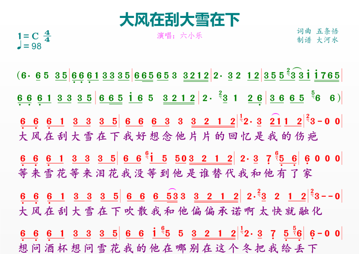 大风在刮大雪在下简谱 - 六小乐演唱