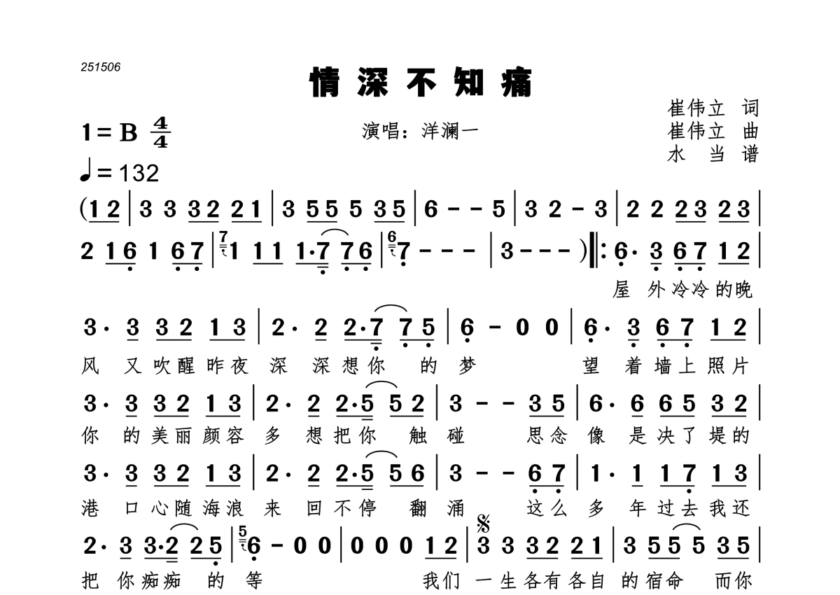 《情深不知痛》是洋澜一演唱的一首歌曲,这份简谱共有一张高清图谱,图谱由 @水当 编配上传。