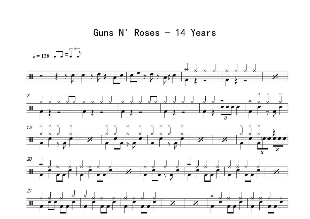 Guns N' Roses《14 Years》架子鼓谱
