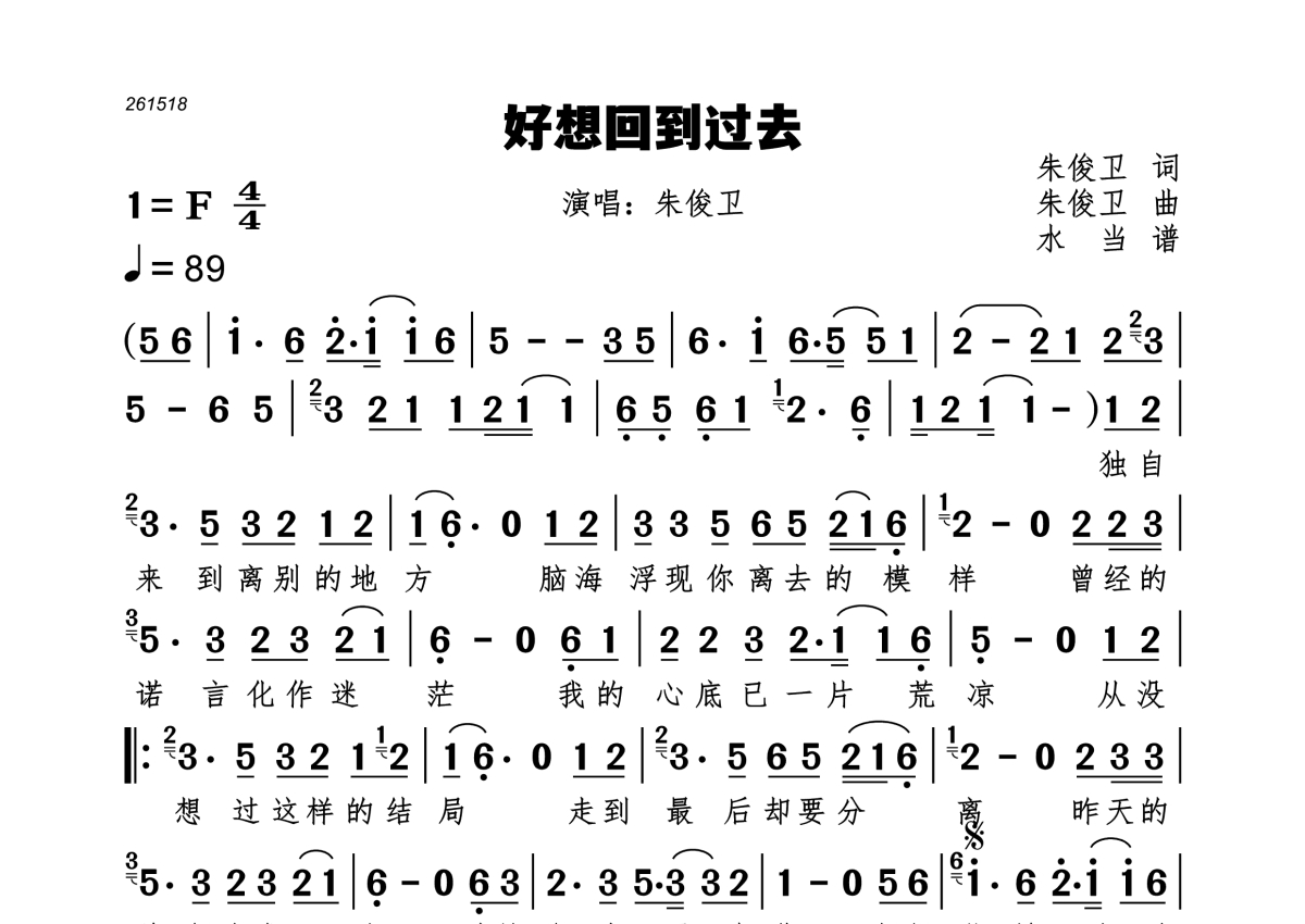 《好想回到过去》是朱俊卫演唱的一首歌曲,拍号为4/4拍,歌曲速度为每分钟89拍,这份简谱共有一张高清图谱,图谱由 @水当 编配上传。
