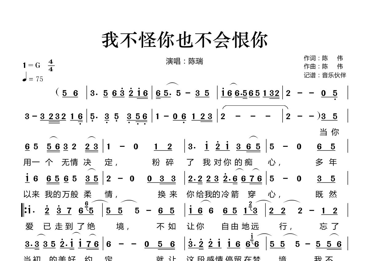 我不怪你也不会恨你简谱 - 陈瑞演唱