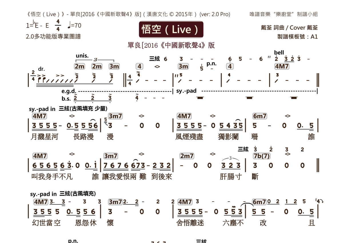 单良《悟空(Live)》乐队总谱 - 2.0版多功能团谱