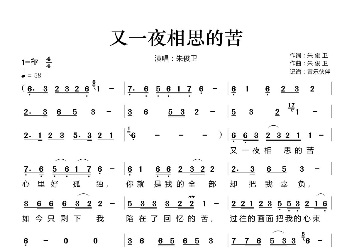 又一夜相思的苦简谱 - 朱俊卫演唱