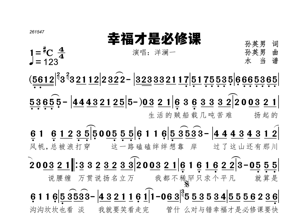 《幸福才是必修课》是洋澜一演唱的一首歌曲,拍号为4/4拍,这份简谱共有一张高清图谱,图谱由 @水当 编配上传。