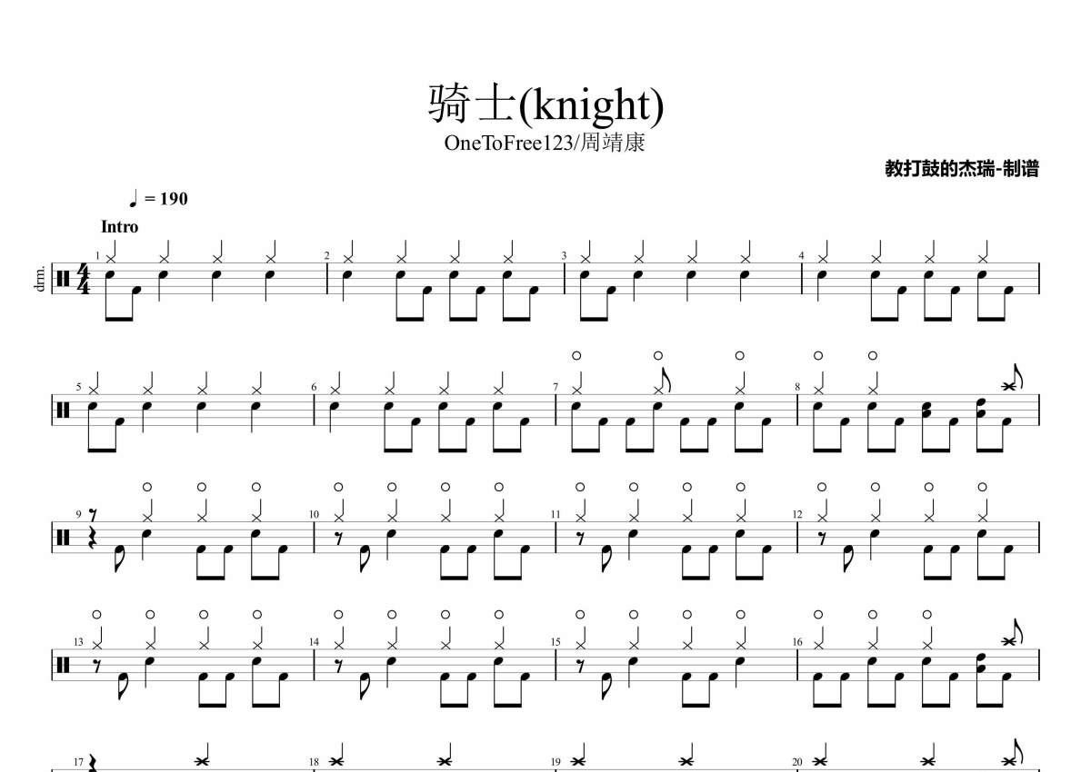 OneToFree123/周靖康《骑士(knight)》架子鼓谱