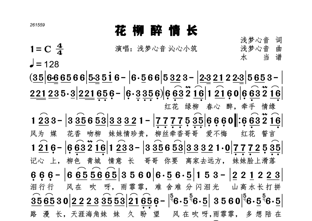 花柳醉情长简谱 - 浅梦心音 沁心小筑演唱