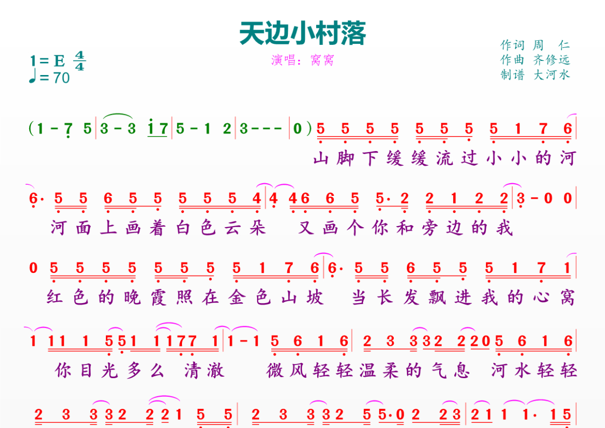 《天边小村落》是窝窝演唱的一首歌曲,这份简谱共有一张高清图谱,图谱由 @临海雪原 编配上传。
