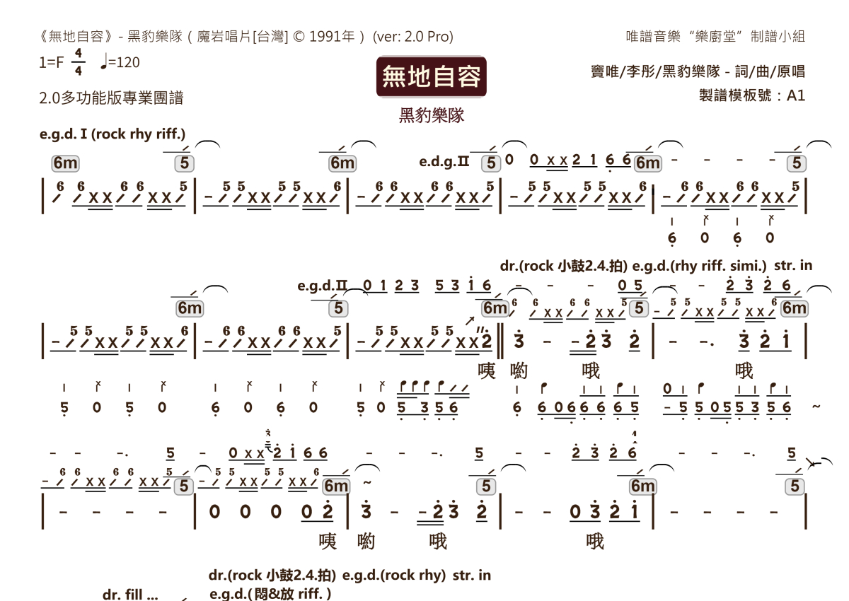 黑豹乐队《无地自容》乐队总谱 - 2.0版多功能团谱