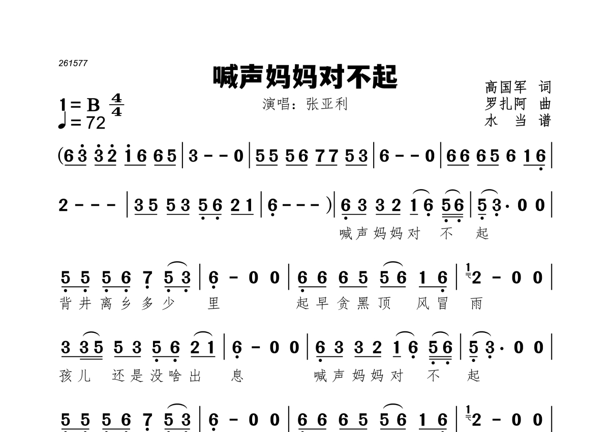 喊声妈妈对不起简谱 - 张亚利演唱