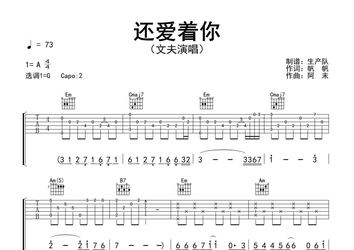 文夫《还爱着你》吉他谱 - G调弹唱六线谱 - 精编完美版