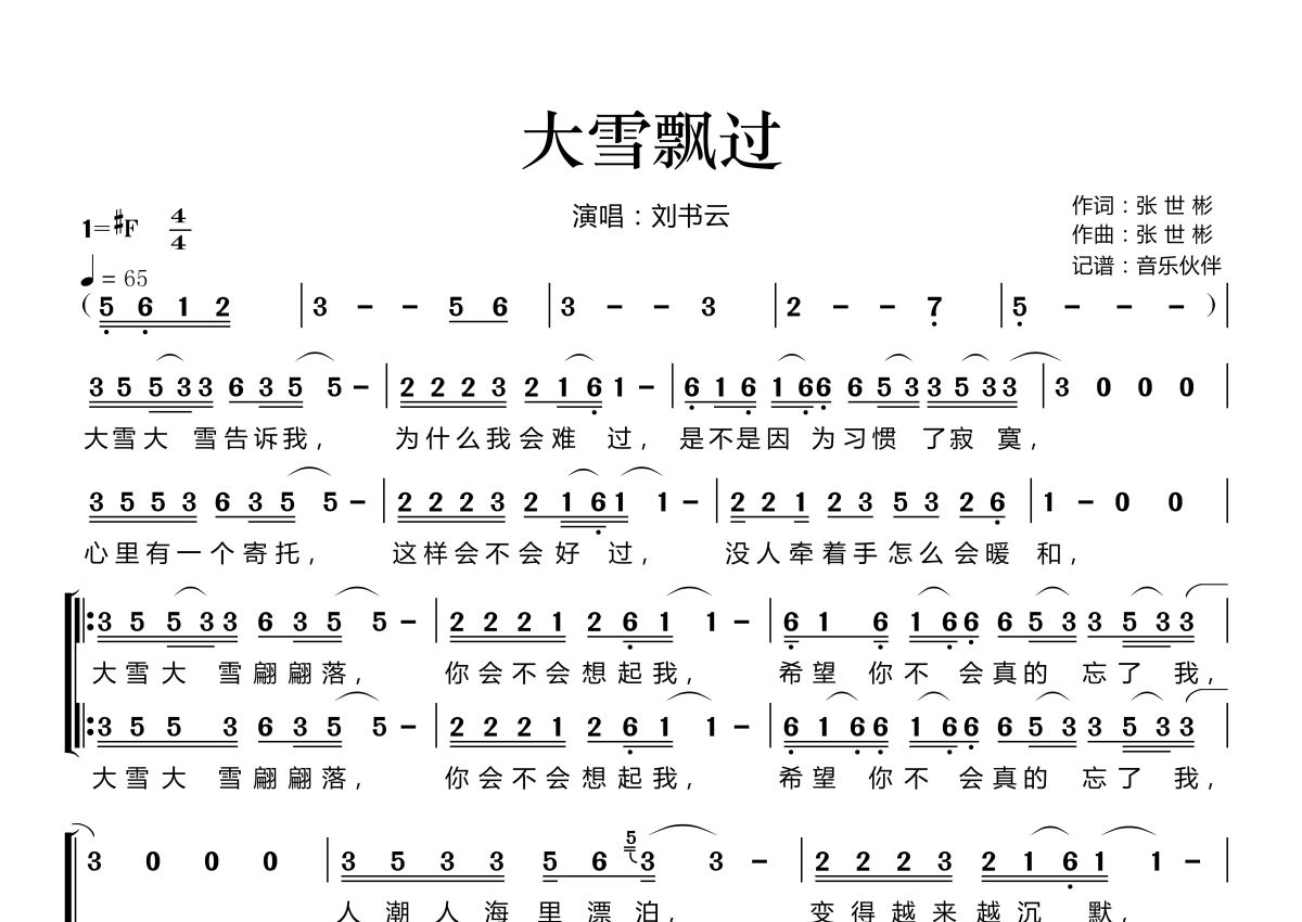 《大雪飘过》是刘书云演唱的一首歌曲,这份简谱共有两张高清图谱,图谱由 @音乐伙伴 编配上传。