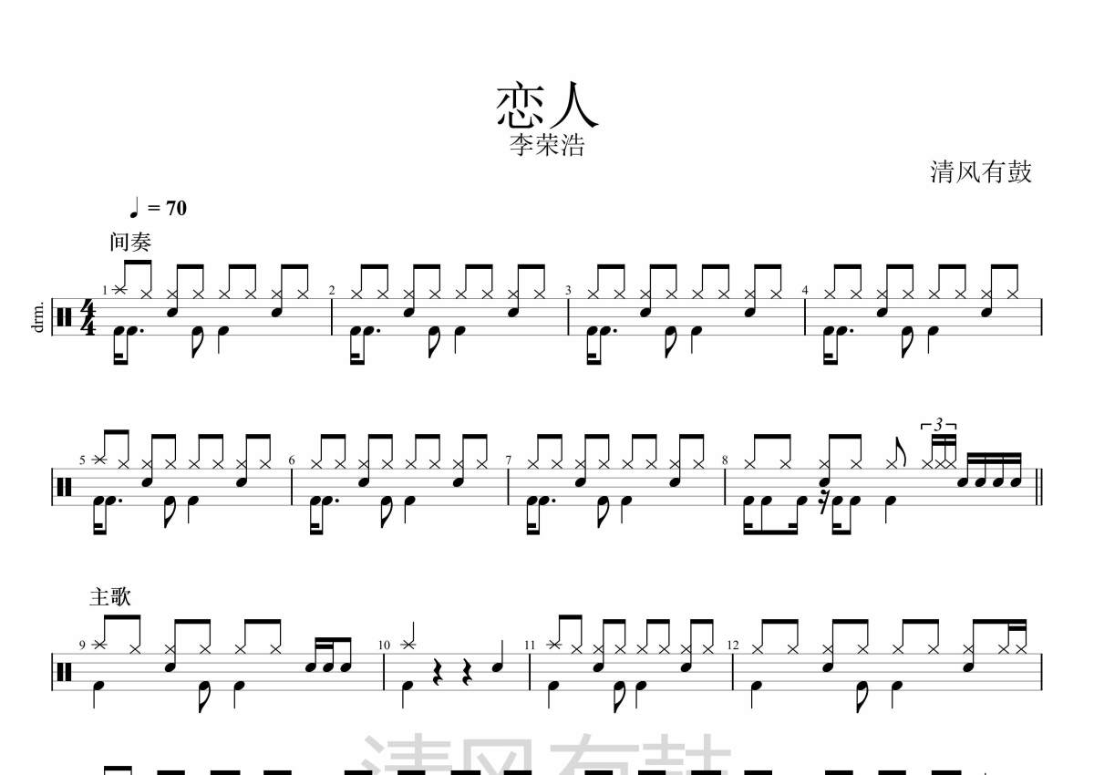 李荣浩《恋人》架子鼓谱