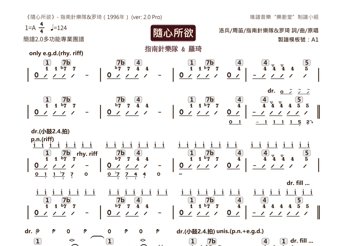 《随心所欲》是指南针乐队&罗琦演唱的一首歌曲,这份乐队总谱共有三张高清图谱,图谱由 @唯谱音乐"乐厨堂"发布小组 编配上传。