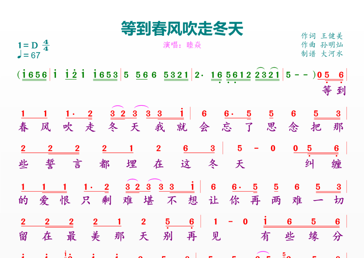 等到春风吹走冬天简谱 - 睦焱演唱
