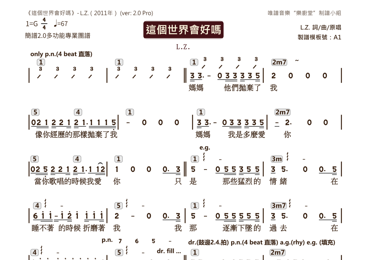 L.Z.《这个世界会好吗》乐队总谱 - 2.0版多功能团谱