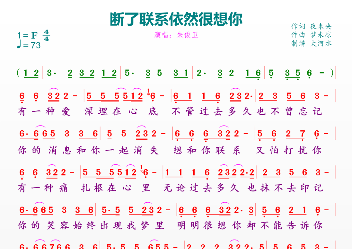 断了联系依然很想你简谱 - 朱俊卫演唱