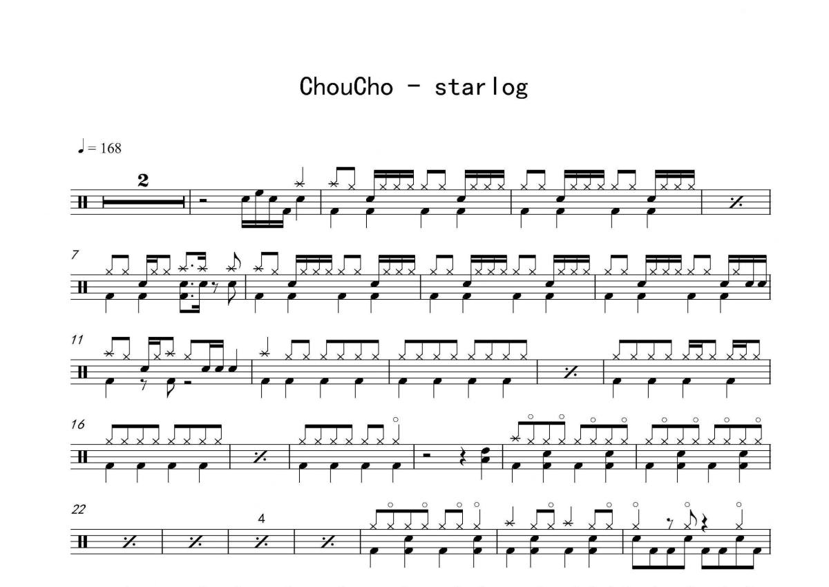 ChouCho《starlog》架子鼓谱