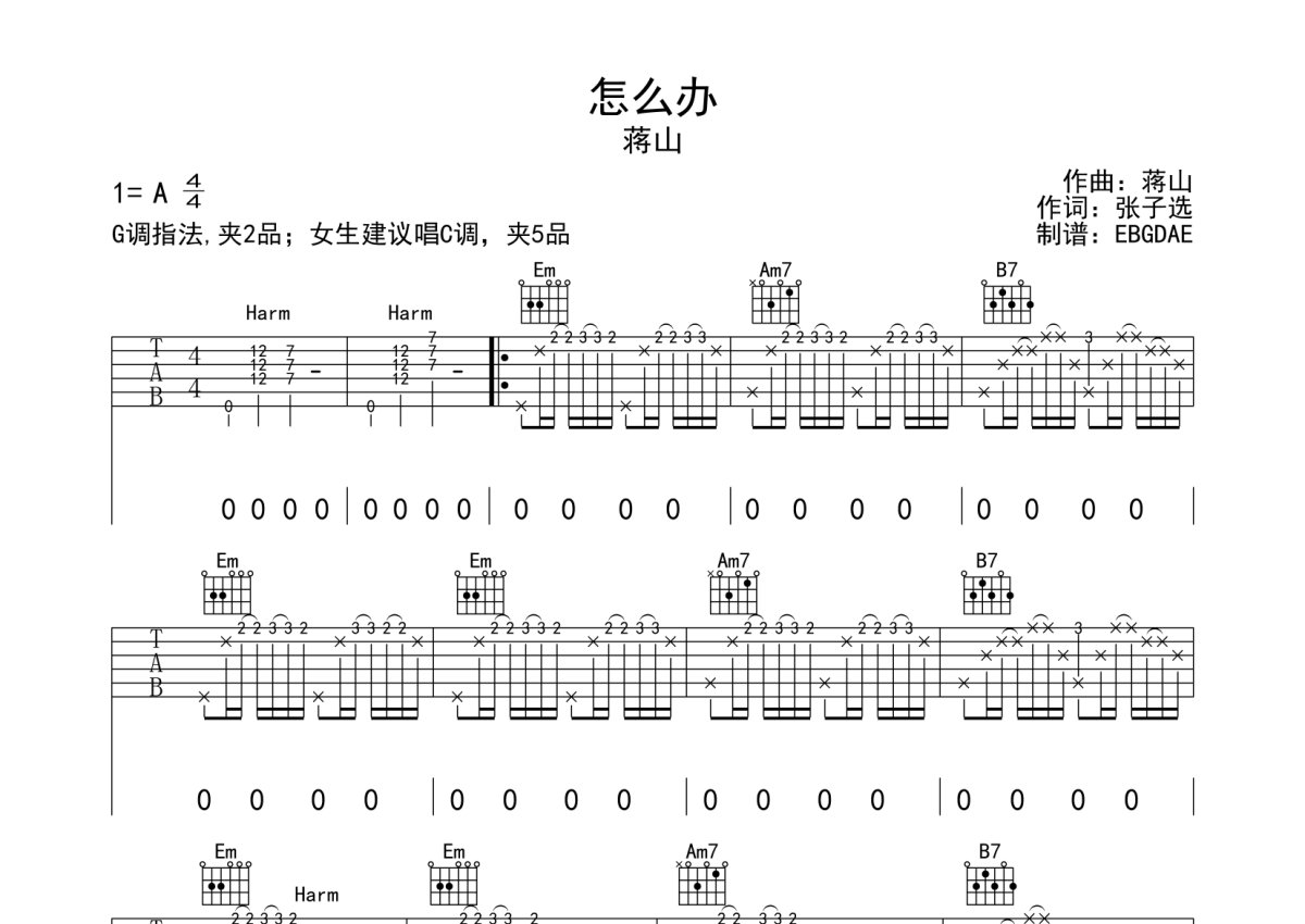 蒋山《怎么办》吉他谱 - G调弹唱六线谱