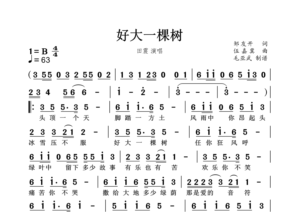 《好大一棵树》是田震演唱的一首歌曲,这份简谱共有一张高清图谱,图谱由 @秋天的童话 编配上传。