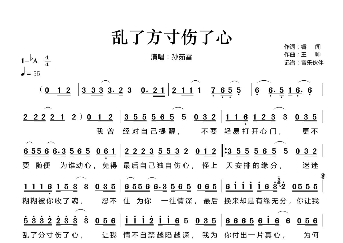 乱了方寸伤了心简谱 - 孙茹雪演唱