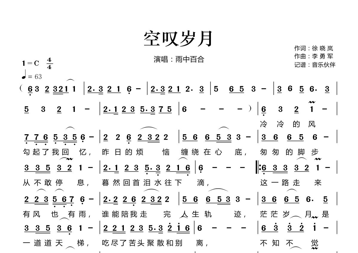空叹岁月简谱 - 雨中百合演唱