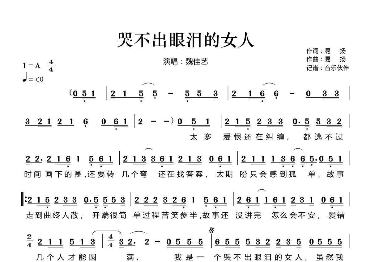 哭不出眼泪的女人简谱 - 魏佳艺演唱