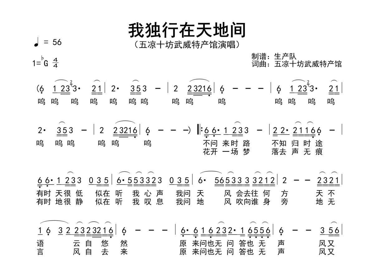 五凉十坊武威特产馆《我独行在天地间》简谱 - 原版简谱