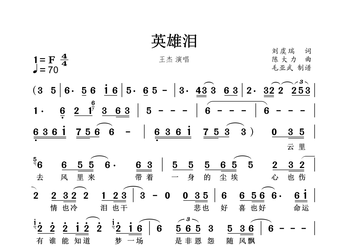 《英雄泪》是王杰演唱的一首歌曲,这份简谱共有两张高清图谱,图谱由 @秋天的童话 编配上传。
