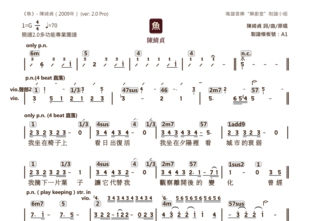 陈绮贞《鱼》乐队总谱 - 2.0版多功能团谱