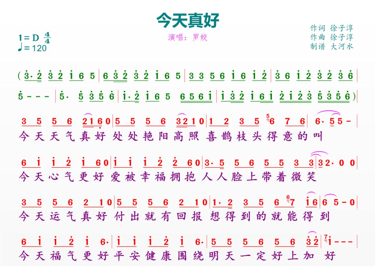 《今天真好》是罗姣演唱的一首歌曲,这份简谱共有一张高清图谱,图谱由 @临海雪原 编配上传。