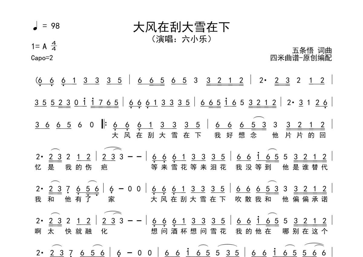 大风在刮大雪在下简谱 - 六小乐SRV7758521编配