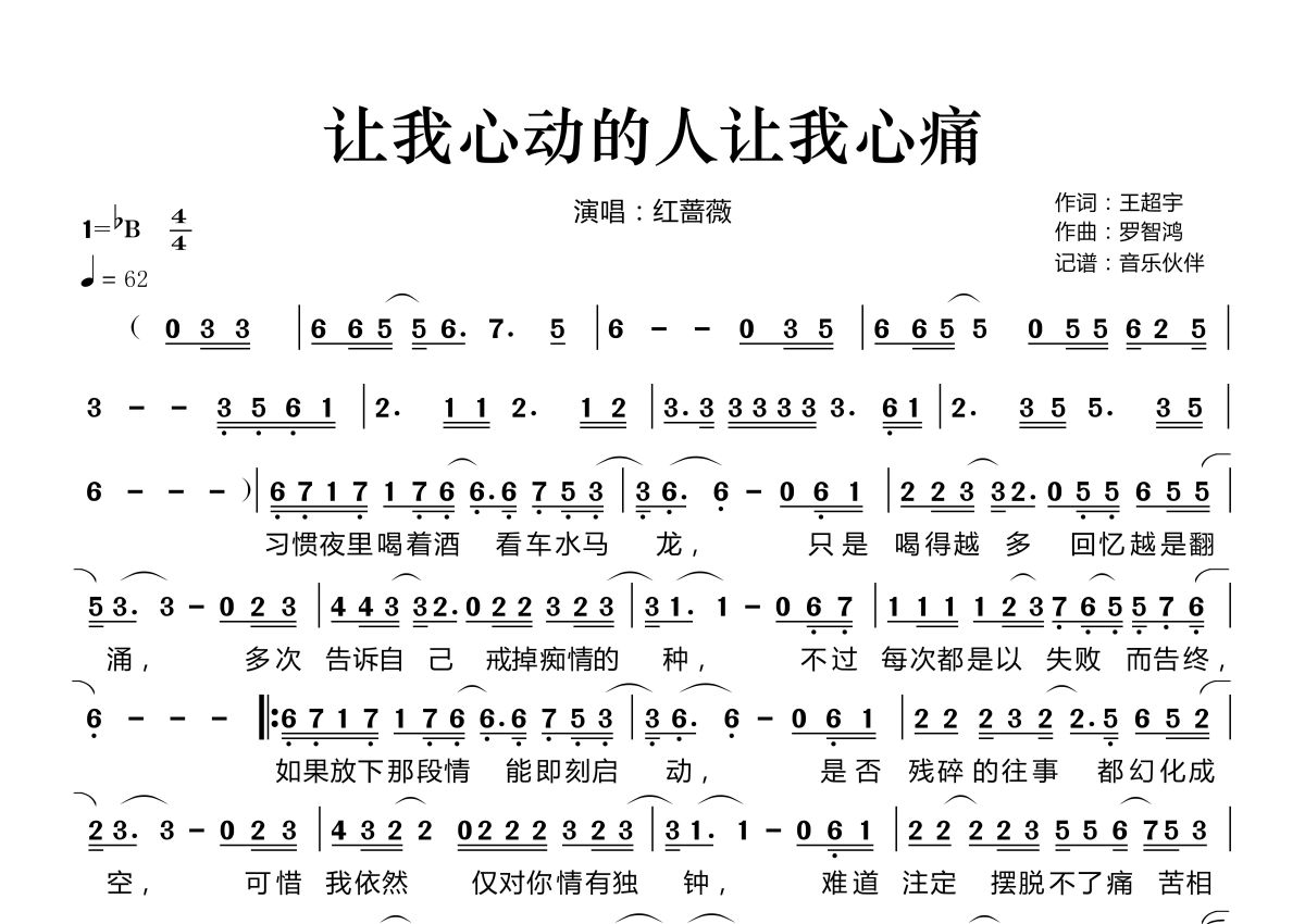 让我心动的人让我心痛简谱 - 红蔷薇演唱